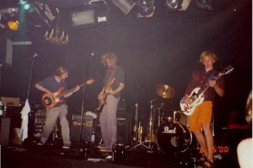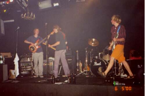 new noize 2 im Cafe Kino - mit zwei Bands - nur eine wurde fotografiert. Von links nach rechts zu sehen: Gnu am Bass, Striedl und Dieta an den Gitarren - und dahinter nicht zu vErkennen: Dattel on drums.
